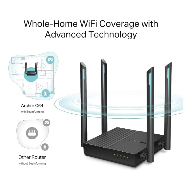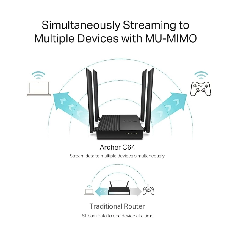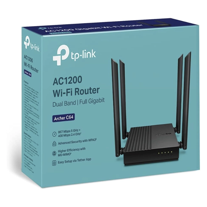 Router Inalambrico Tp-link Ac1200 (Archer C64) 2.4ghz/400mbps, 5ghz/867mbps, Antena X4, Port X4 10/100/1000mbps