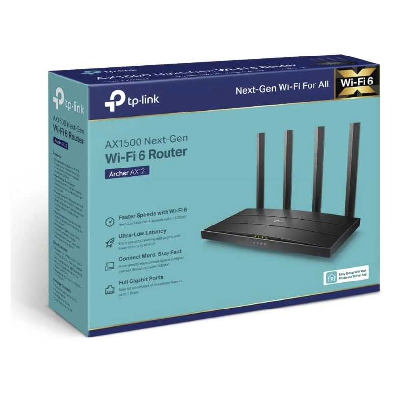 Router Inalambrico Tp-link Ax1500 Wi-fi 6 (Archer Ax12) 2.4ghz/300mbps, 5ghz/1201mbps, Antena X4, Port X3 10/100/1000mbps