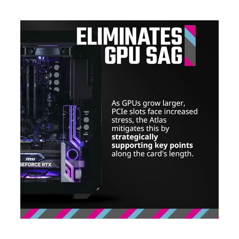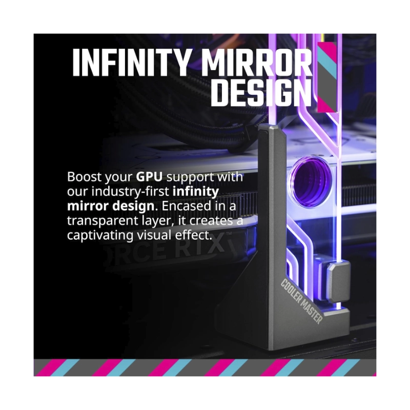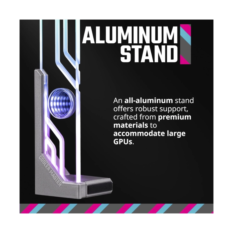 Soporte Para Tarjeta Grafica Cooler Master Atlas Argb (Mca-U000R-Agsbtg-00) Soporte De Imanes De Aluminio, Vidrio Templado Argb, Doble Eje Vertical