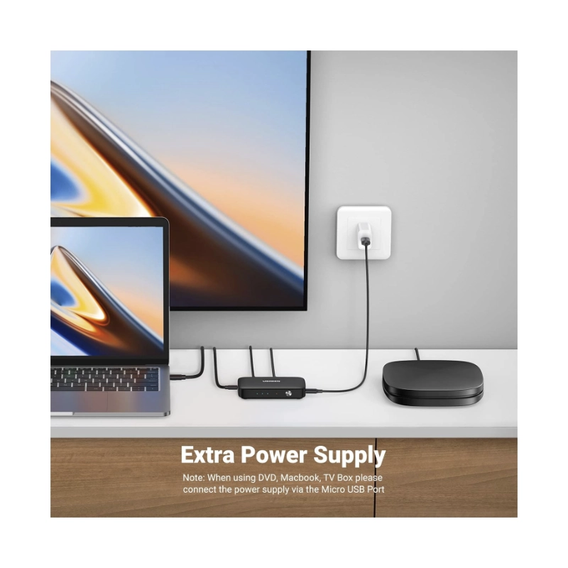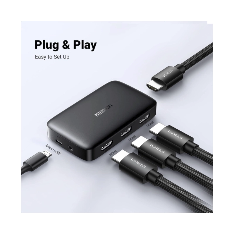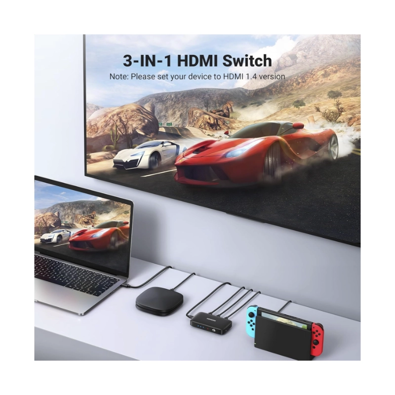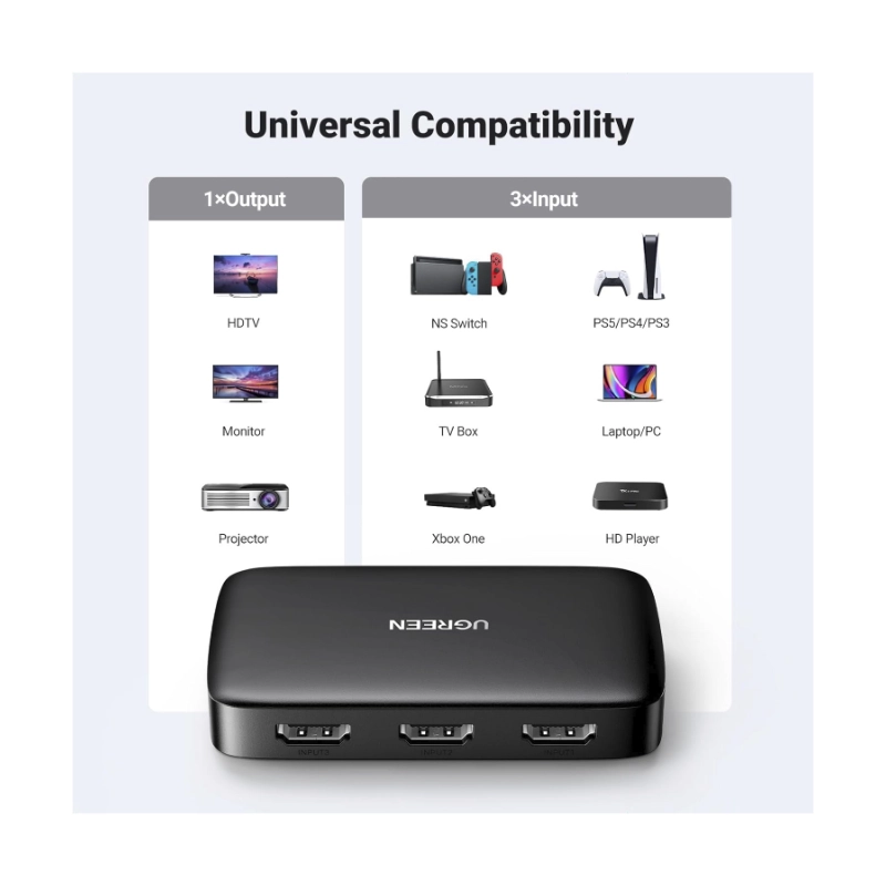 Switch Hdmi 3 X 1 Ugreen Cm332 (80125) Hdmi 1.4, 4K 30Hz, Trasmite Una Sola Imagen De Diferentes Equipos