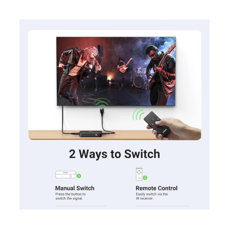 Switch Hdmi 3 X 1 Ugreen (40234) 4K Full Hd 1080P 3D, Con Control Remoto, Trasmite Una Sola Imagen De Diferentes Equipos