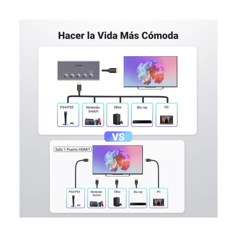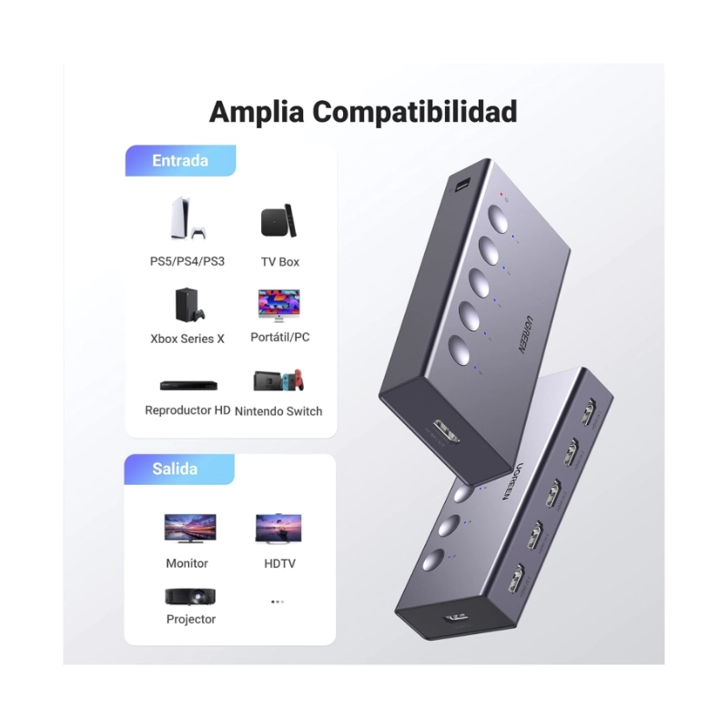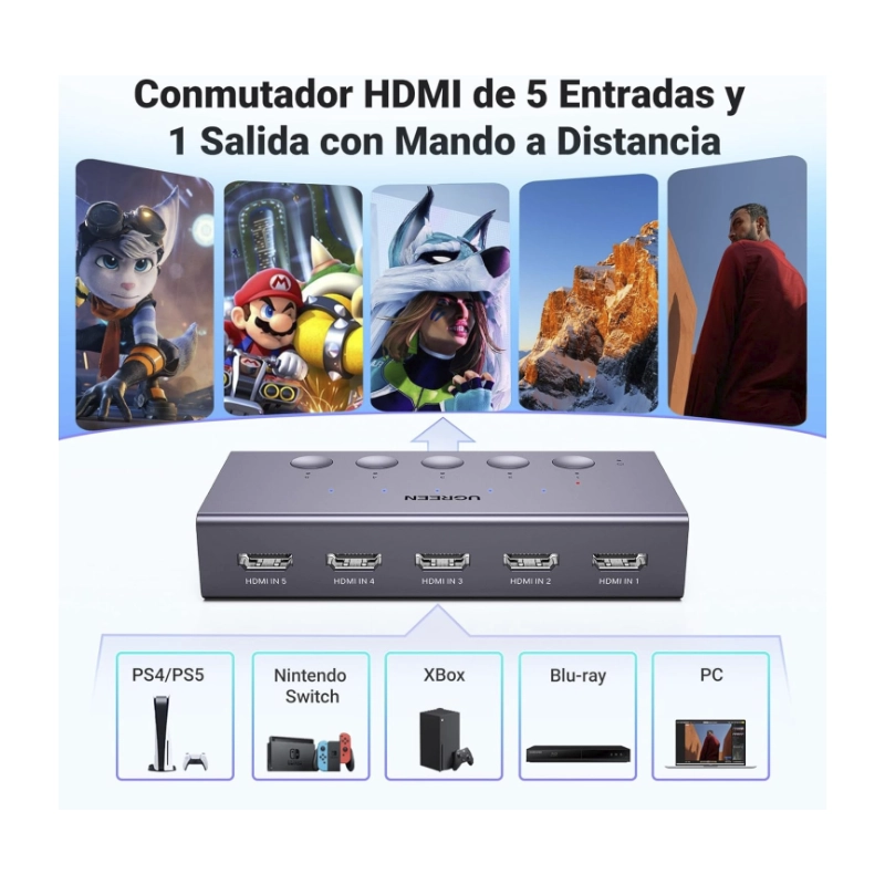Switch Hdmi 5 X 1 Ugreen Cm568 (25857) 4K@60Hz, Con Control Remoto, Trasmite Una Sola Imagen De Diferentes Equipos