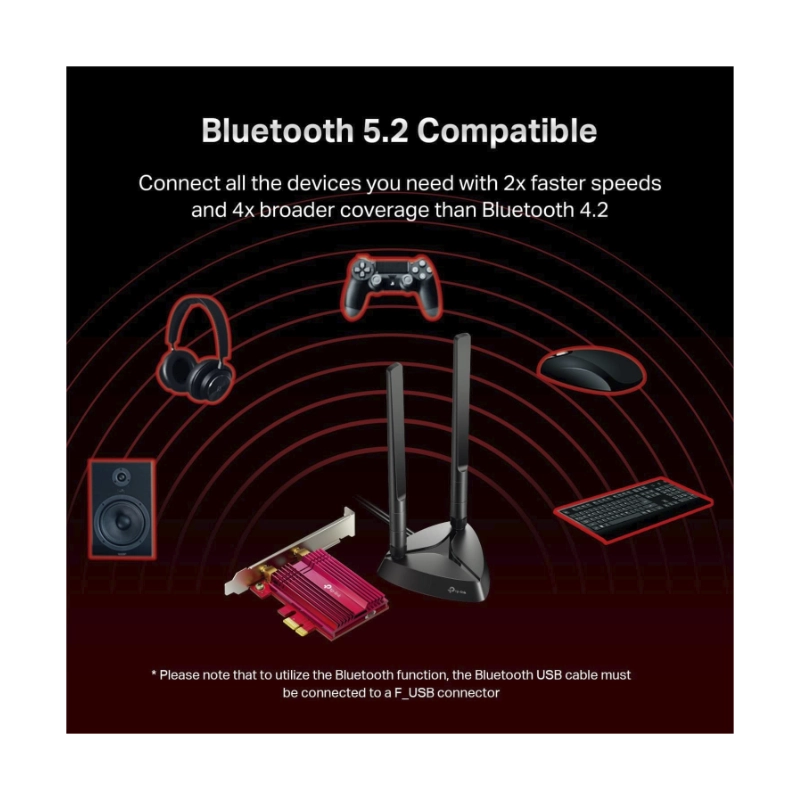 Tarjeta Pcie Inalambrico + Bluetooth 5.0 Tp-Link Ax3000 (Archer Tx3000E) Wi-Fi 6, 2.4Ghz/574Mbps, 5Ghz/2402Mbps, Antena X2, Wpa3