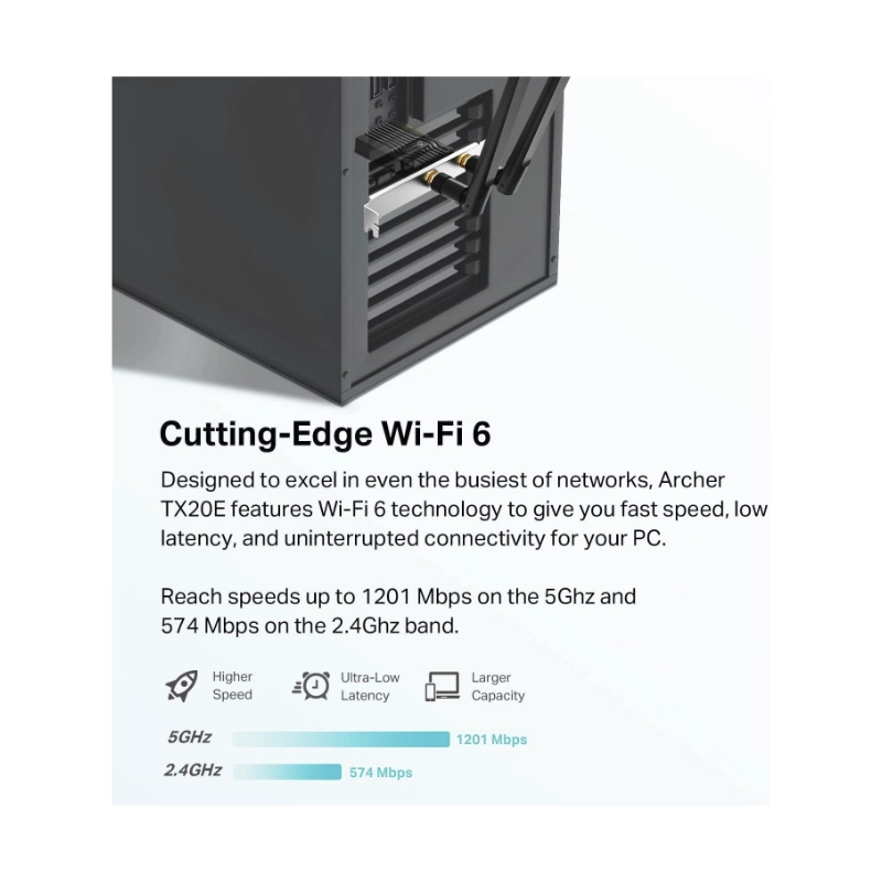 Tarjeta Pcie Inalambrico + Bluetooth 5.2 Tp-link Ax1800 (Archer Tx20e) 2.4ghz/574mbps, 5ghz/1201mbps, Antena X2