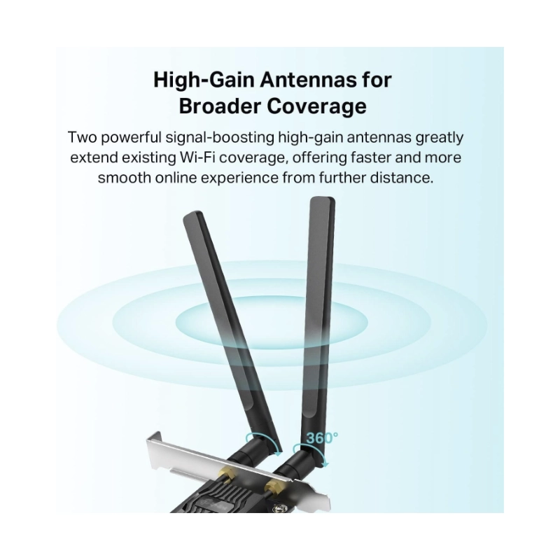 Tarjeta Pcie Inalambrico + Bluetooth 5.3 Tp-Link Axe5400 (Archer Txe72E) Wi-Fi 6, 2.4Ghz/574Mbps, 5/6Ghz 2402Mbps, Antena X2, Wpa3, Latencia Ultrabaja