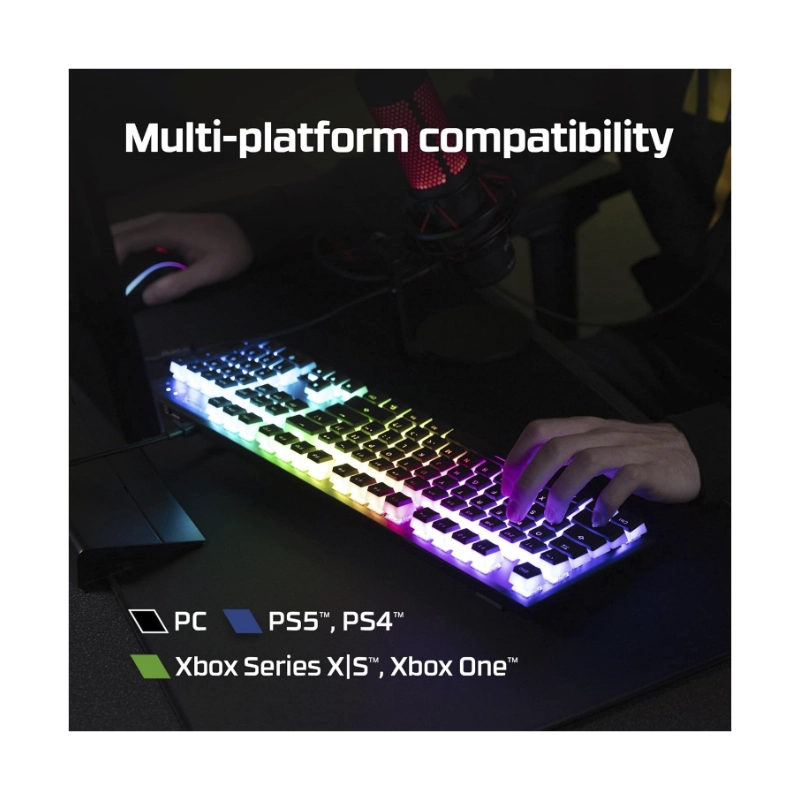 Teclado Hyperx Alloy Rise (7G7A3Aa#Abm) Gaming, Negro, Mecanico, Switch Rojo Lineal, Sensor De Luz Ambiental, Boton Giratorio Para El Volumen, Led-Rgb