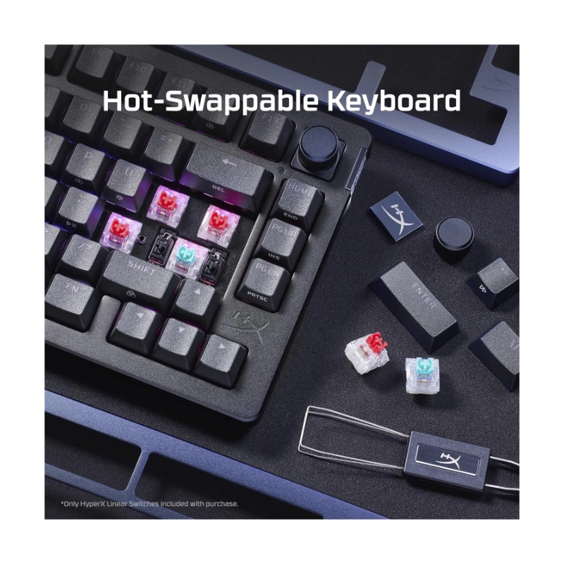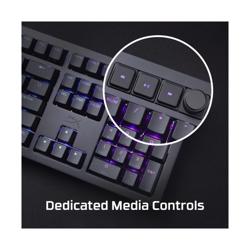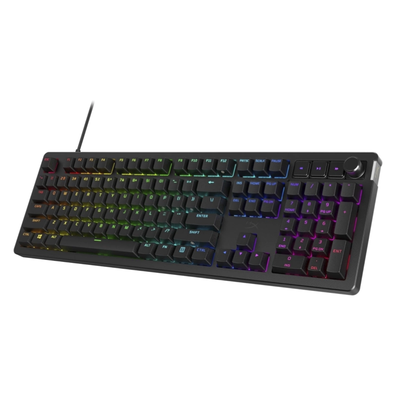 Teclado Hyperx Alloy Rise (7G7A3Aa#Abm) Gaming, Negro, Mecanico, Switch Rojo Lineal, Sensor De Luz Ambiental, Boton Giratorio Para El Volumen, Led-Rgb