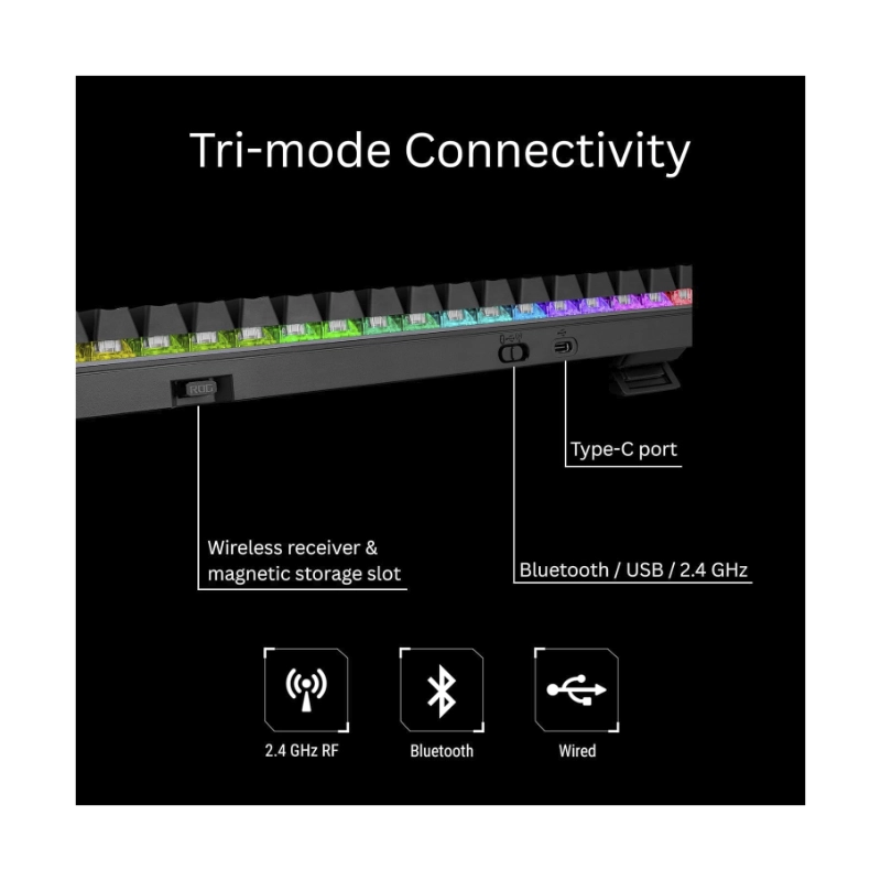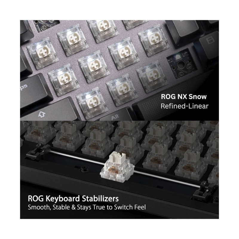 Teclado Inalambrico Asus (X901 Strix Scope Ii 96 Wl/Nxsw/Es/Abs) Gaming, Negro, Mecanico, Bluetooth, Switch Lineales De Nieve Rog Nx, Trimodo, Led-Rgb