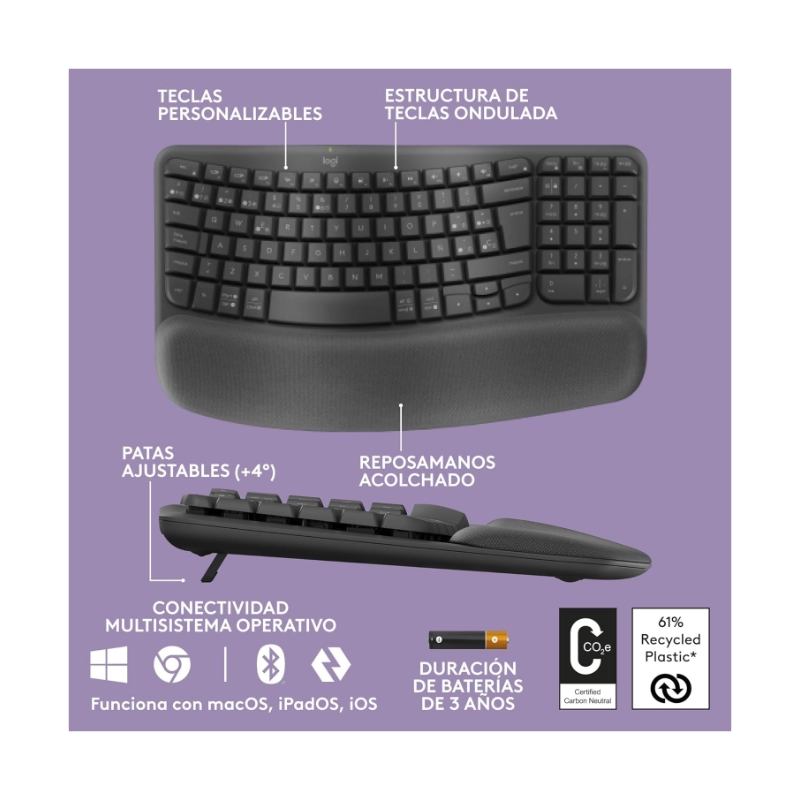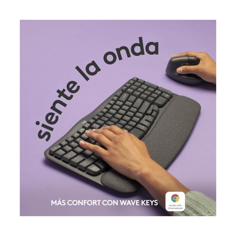 Teclado Inalambrico Logitech Ergo Wave Keys (920-012278) Negro, Bluetooth, Ergonomico