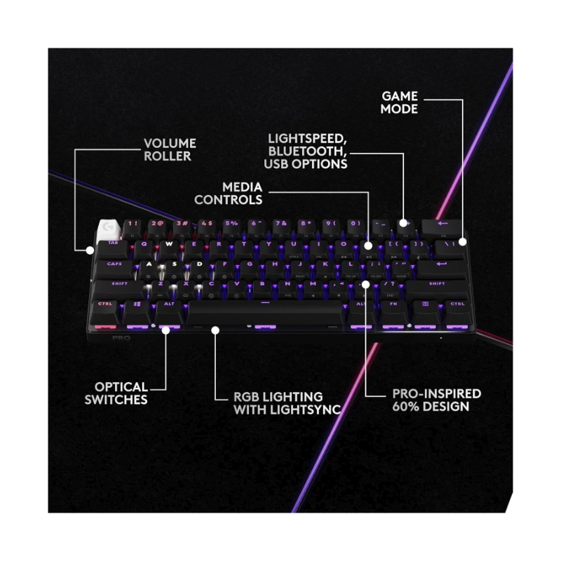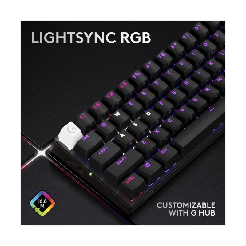 Teclado Inalambrico Logitech G Pro X 60 Lightspeed 60% (920-011902) Gaming, Negro, Mecanico, Switch Tactiles Opticos, Bluetooth, Led-Rgb