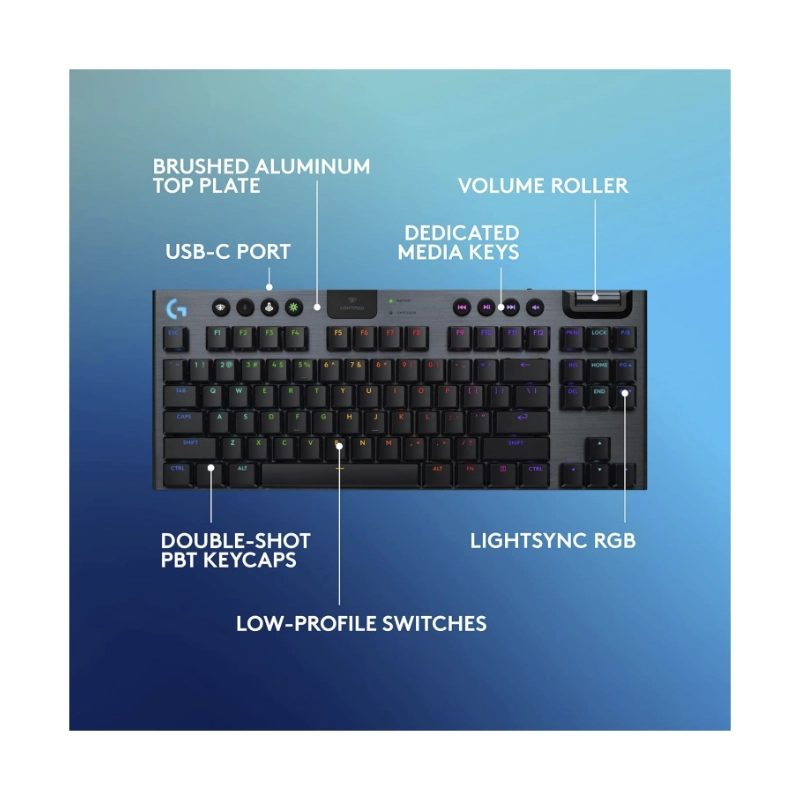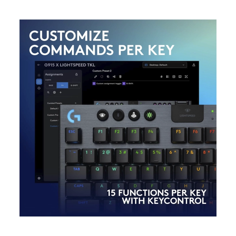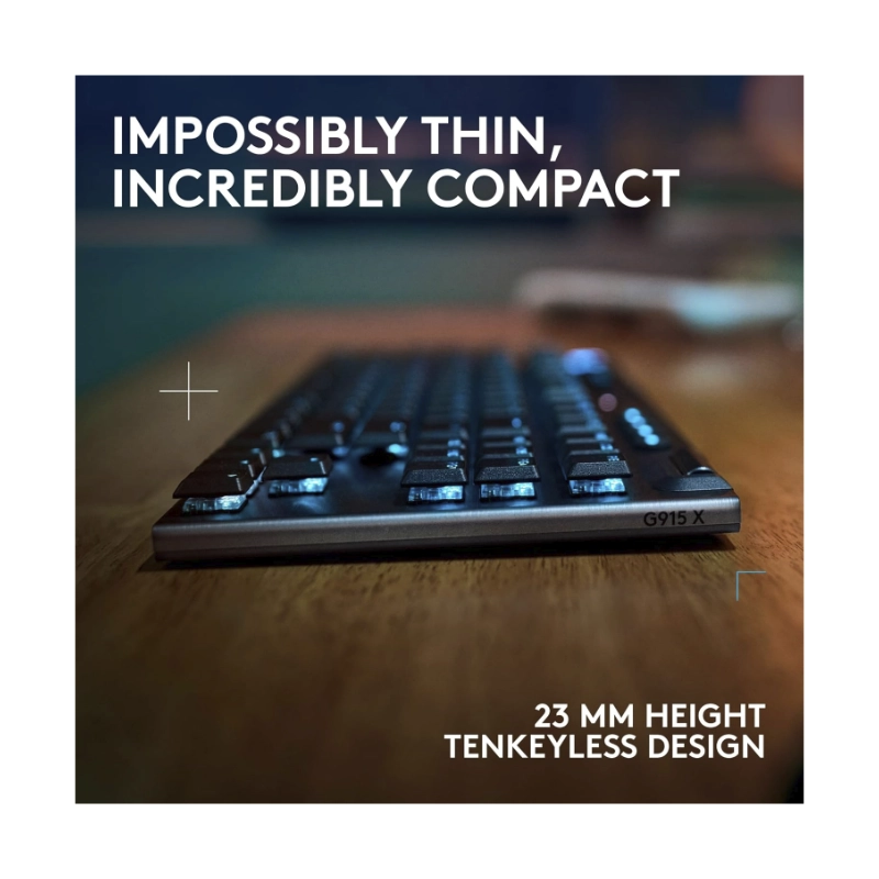 Teclado Inalambrico Logitech G915 X Lightspeed Tkl 80% (920-012715) Gaming, Negro, Mecanico, Switch Marron, Bluetooth, Led-Rgb