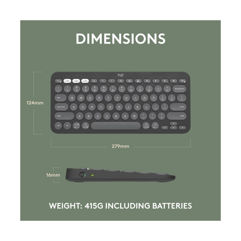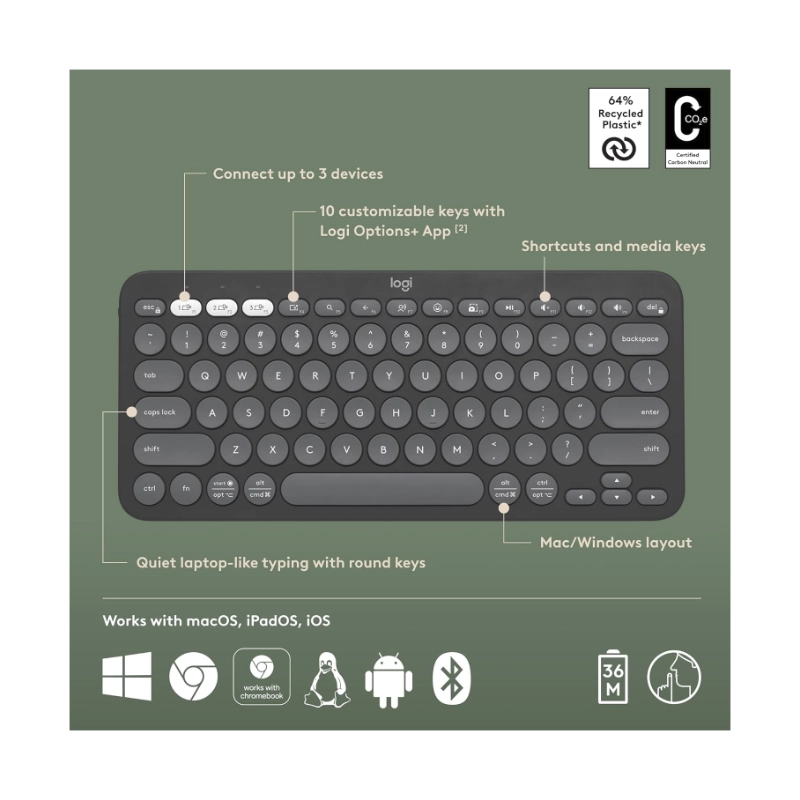 Teclado Inalambrico Logitech Pebble Keys 2 K380S (920-011783) Negro, Bluetooth, Multidispositivo, Delgado Y Portatil,Windows, Macos, Ipados, Android