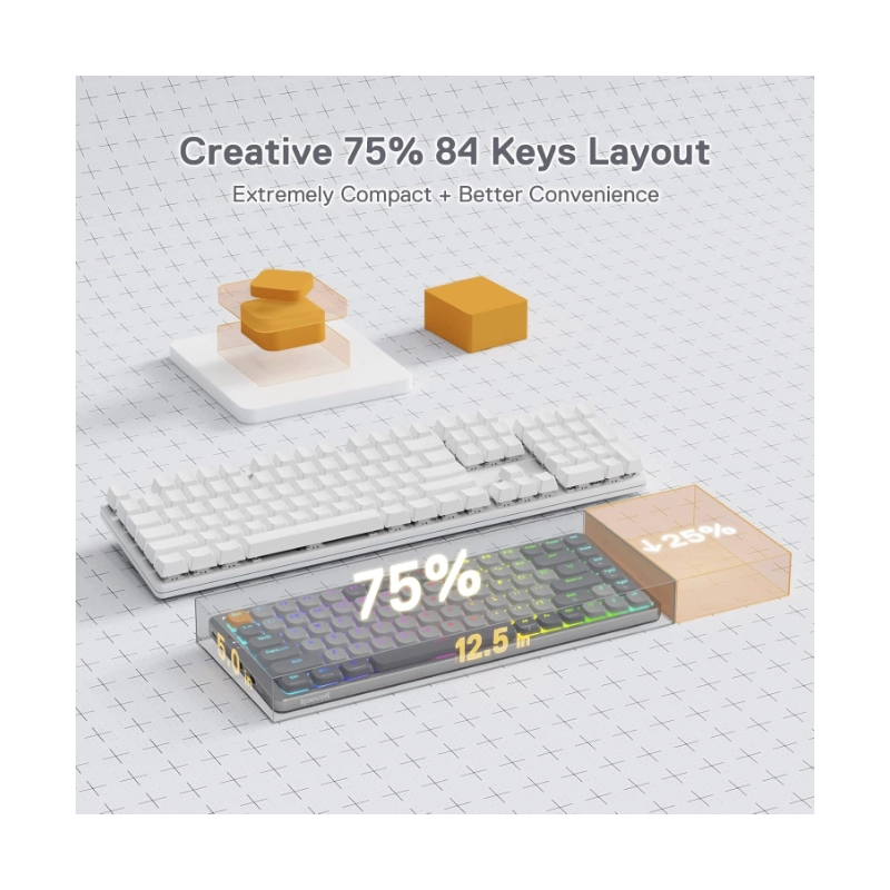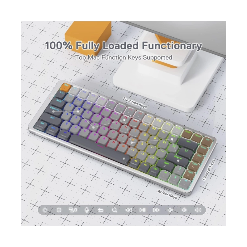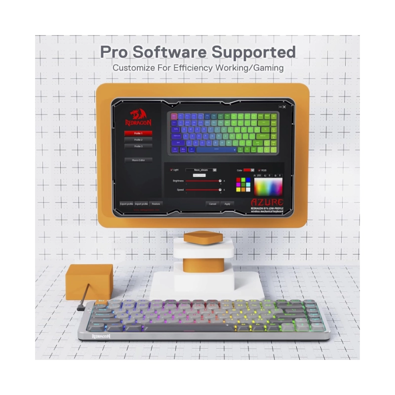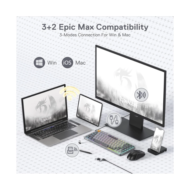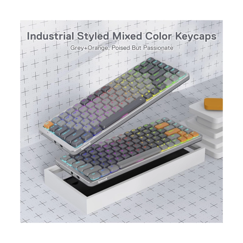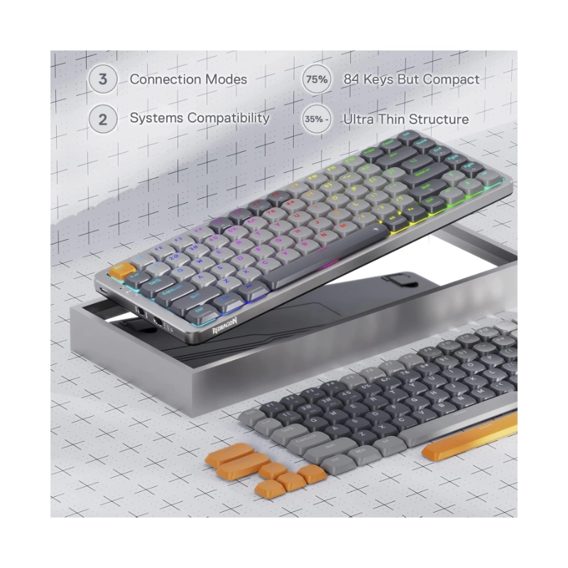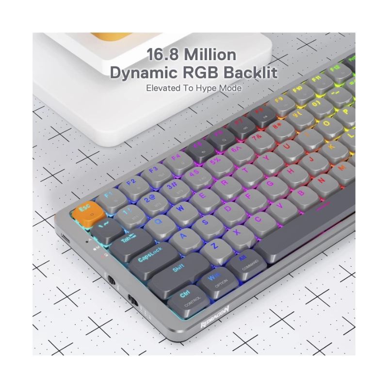 Teclado Inalambrico Redragon Azure 80% (K652gg-rgb-pro) Gaming, Gris, Mecanico, Switch Rojo, Bluetooth, Led-rgb