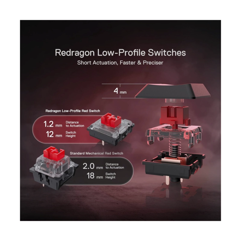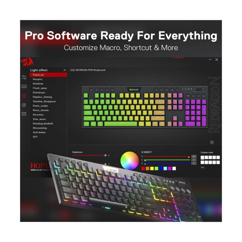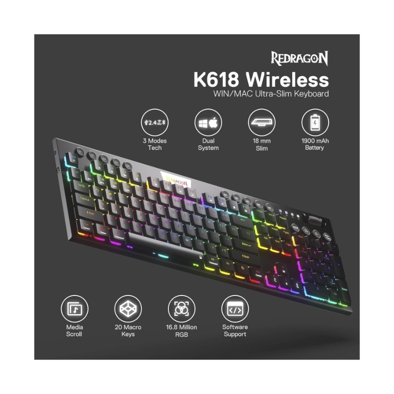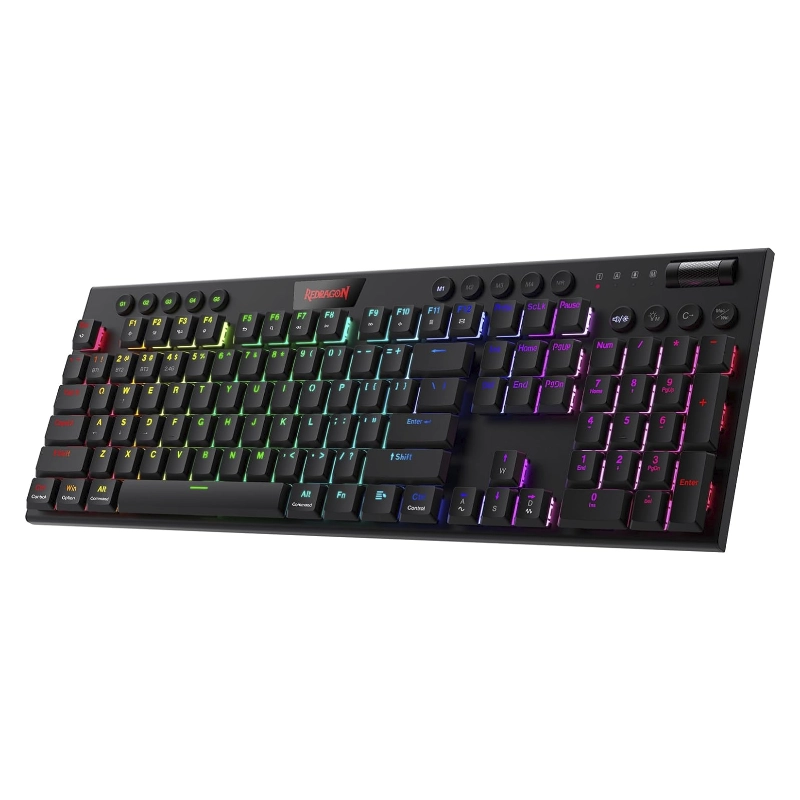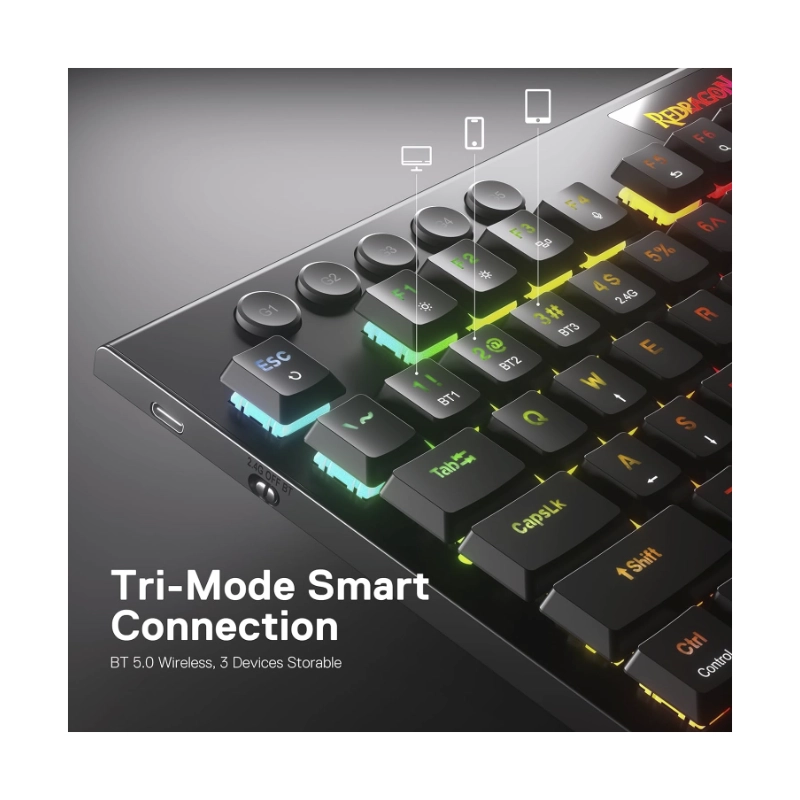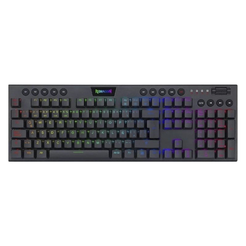 Teclado Inalambrico Redragon Horus Fs (K618-rgb-sp-r) Gaming, Negro, Mecanico, Switch Rojo, Bluetooth, Led-rgb