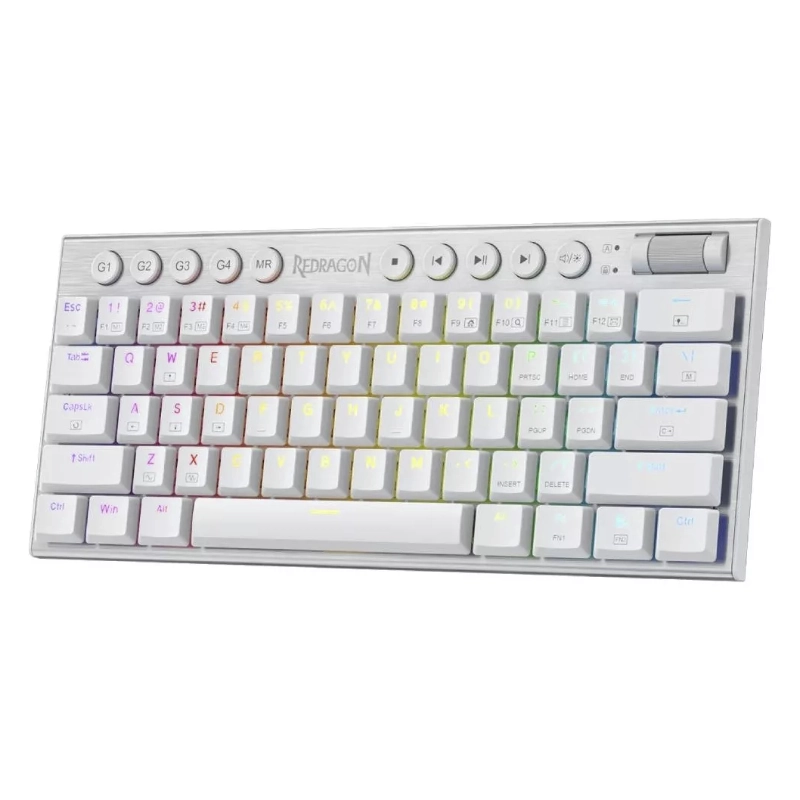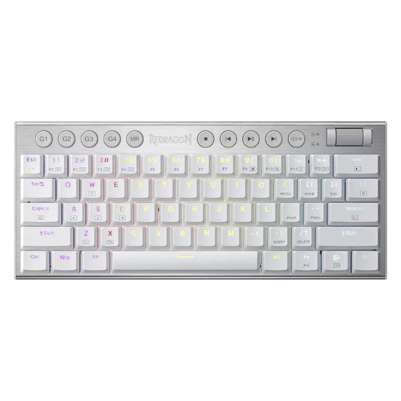 Teclado Inalambrico Redragon Horus Mini Pro 60% (K632w-rgb-pro) Gaming, Blanco, Mecanico, Switch Rojo, Bluetooth, Led-rgb