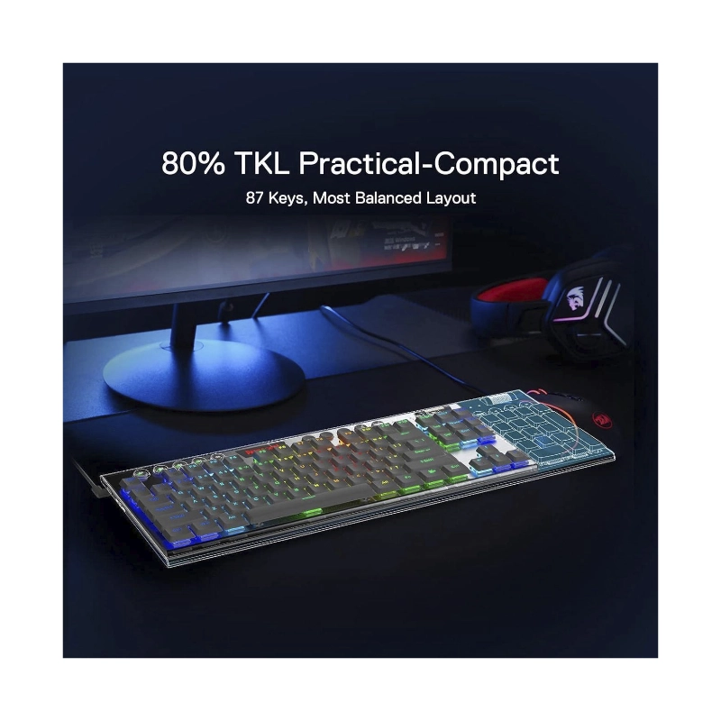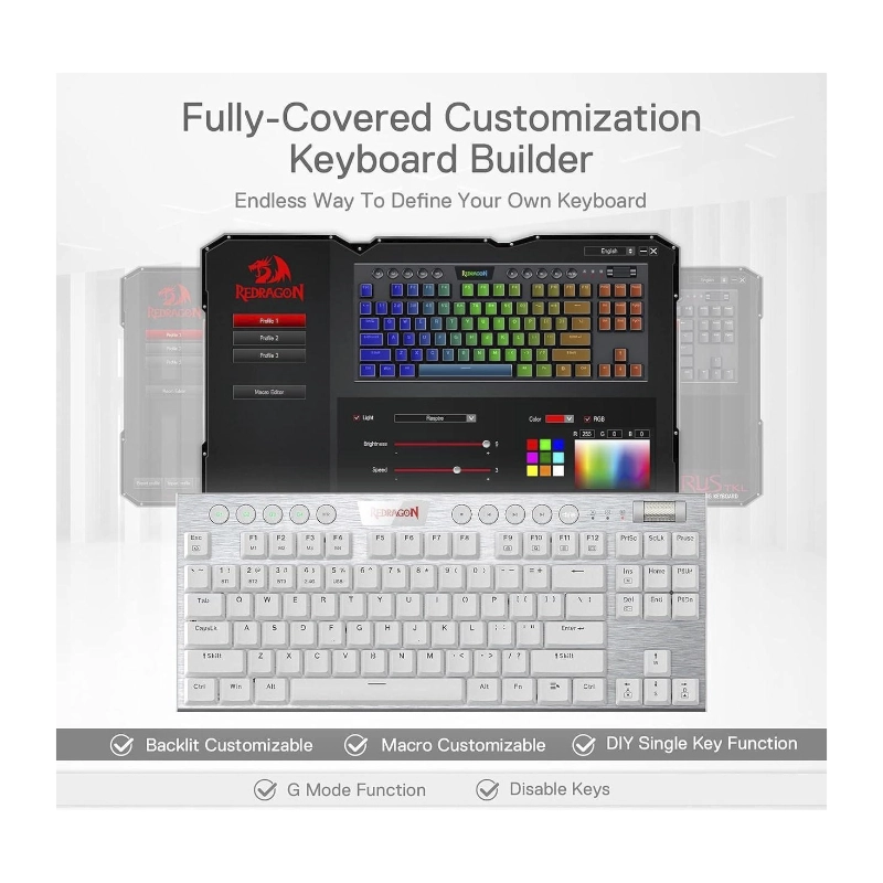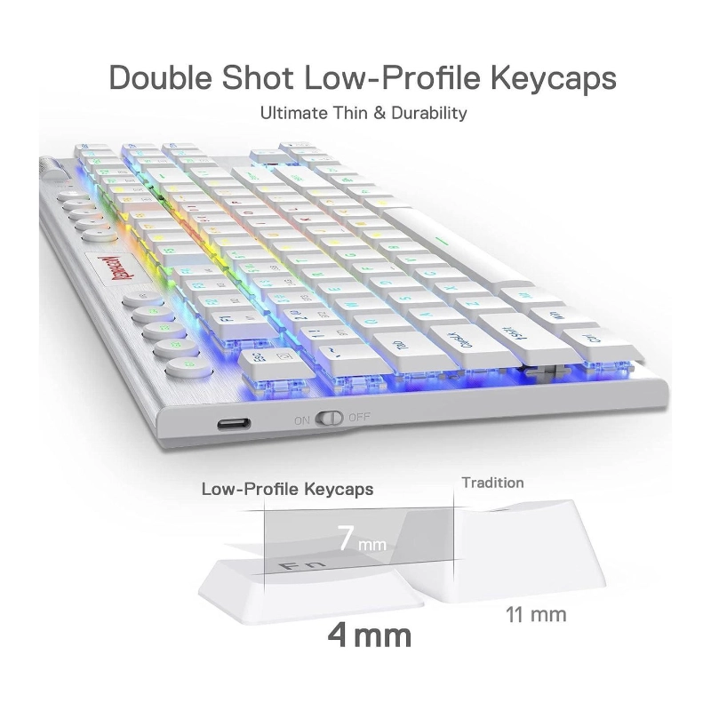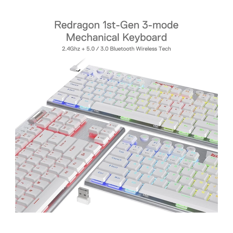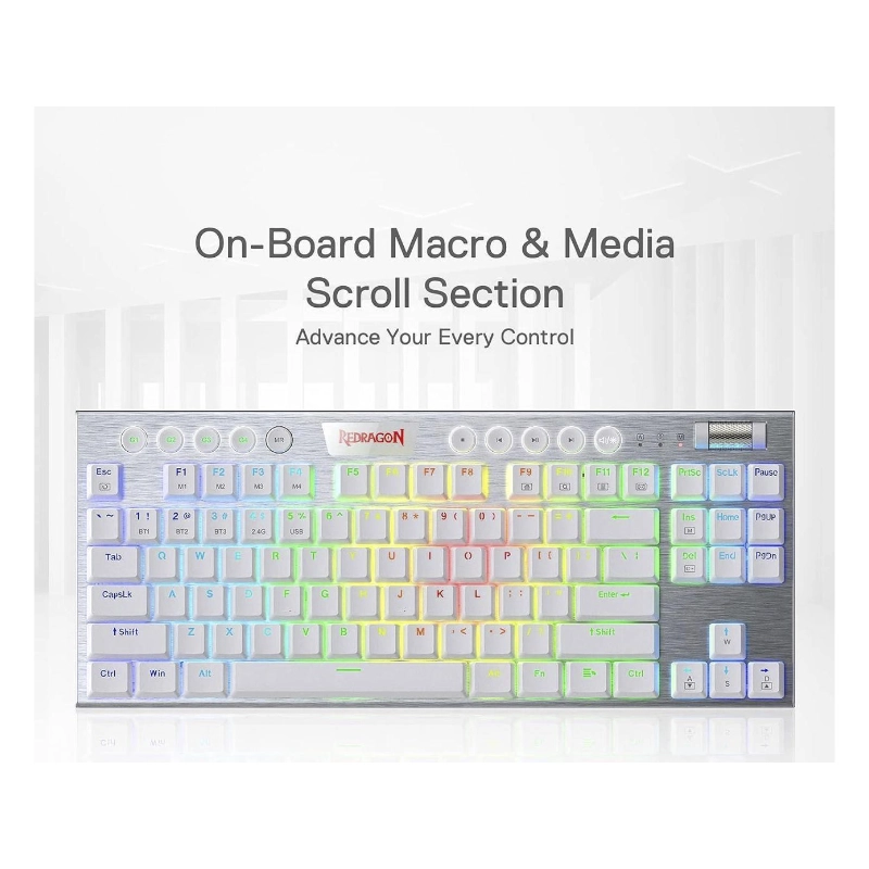 Teclado Inalambrico Redragon Horus Tkl 80% (K621w-rgb-sp-r) Gaming, Blanco, Mecanico, Bluetooth, Switch Rojo, Led-rgb