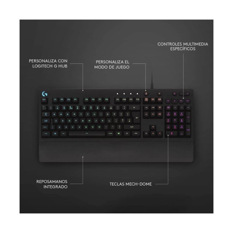 En resumen, el Teclado Logitech G213 Prodigy es la elección perfecta para los jugadores que buscan un rendimiento fiable, un estilo personalizable y un gran confort, todo en un paquete duradero y accesible.