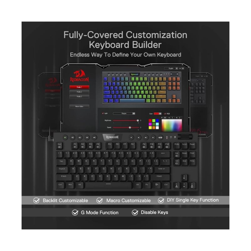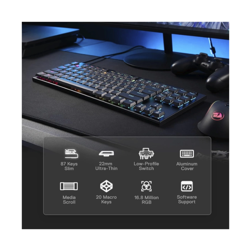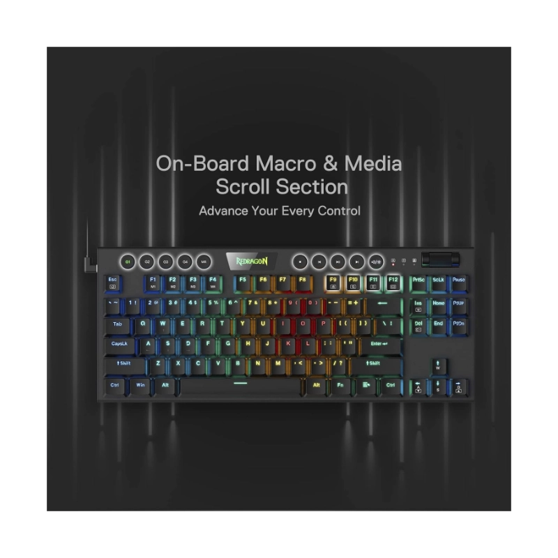 Teclado Redragon Horus Tkl 80% (K622-rgb-sp-r) Gaming, Negro, Mecanico, Switch Rojo, Led-rgb