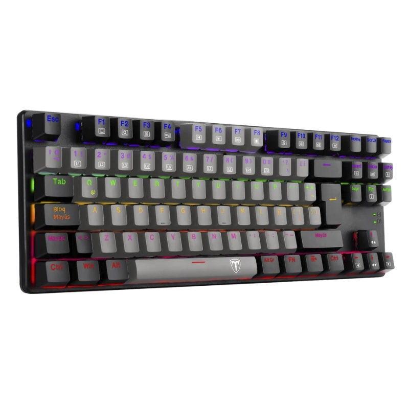 Teclado T-Dagger Bora Rainbow 80% (T-Tgk313Gb-Sp) Gaming, Negro Con Gris, Mecanico, Switch Rojo, Led-Rgb