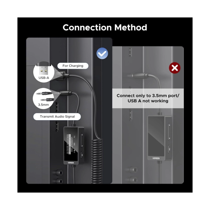 Transmisor Y Receptor De Audio Via Bluetooth Ugreen Bt303 (45236) Modo Tx Y Rx, Bt 5.4, Adaptador Auxiliar De Audio De 3,5 Mm, Coche Y Estereo