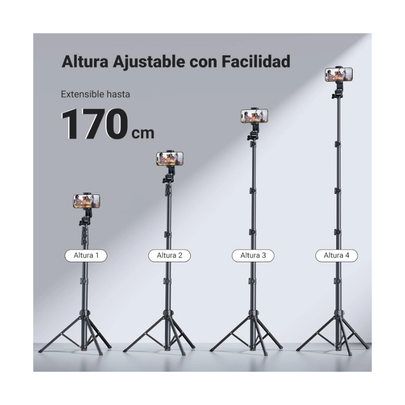 Tripode Para Celular Ugreen Lp680 (15609) Palo Selfie, Extensible De 170Cm, Con Control Bluetooth