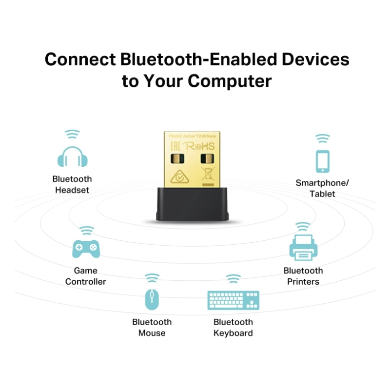 Usb Inalambrico + Bluetooth 4.2 Tp-link Ac600 (Archer T2ub Nano) Nano, 2.4ghz/200mbps, 5ghz/433mbps