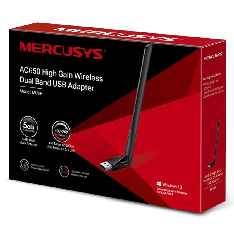 Usb Inalambrico Mercusys Ac650 (Mu6h) 2.4ghz/200mbps, 5ghz/433mbps, Antena X1