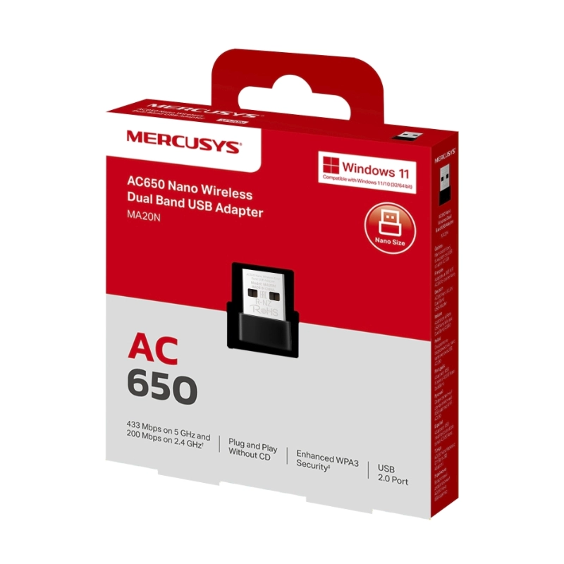 Usb Inalambrico Mercusys Ac650 Nano (Ma20N) 2.4Ghz/200Mbps, 5Ghz/433Mbps