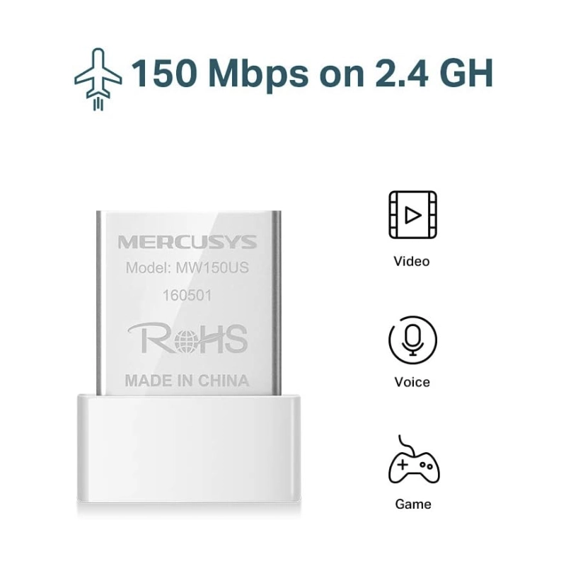 Usb Inalambrico Mercusys N150 (Mw150Us) 2.4Ghz/150Mbps, Blanco, Nano