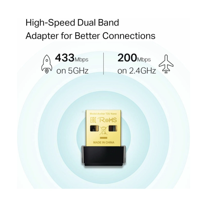 Usb Inalambrico Tp-link Ac600 (Archer T2u Nano) Nano, 2.4ghz/200mbps, 5ghz/433mbps